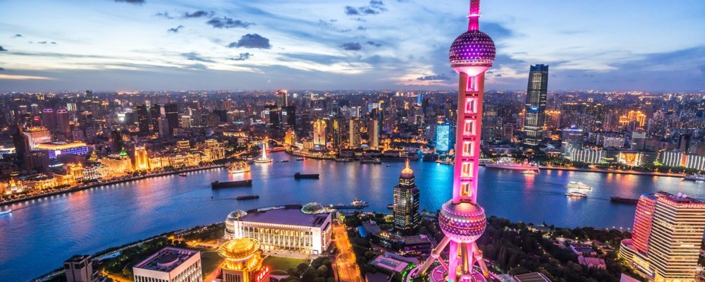 Desde el punto de vista de su geografía, la ciudad está cruzada por el río Huangpu, afluente del Yangtzé que la divide en dos sectores: el occidental donde se encuentra el centro histórico y el oriental donde está el distrito financiero de Pudong. Tiene alrededor de 4000 rascacielos, algunos de ellos, los más altos del mundo. Su red de centros culturales, deportivos y de diversión es impresionante.