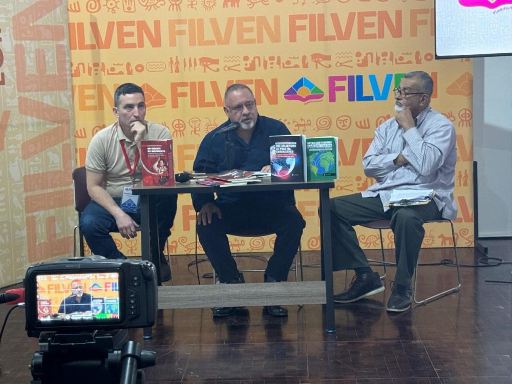 Desde Acercándonos Ediciones volvimos a decir presente en la Feria Internacional del Libro de Venezuela, un encuentro que durante 11 días hizo vibrar Caracas con cultura, pensamiento crítico y compromiso latinoamericano. Presentamos 90 títulos de nuestros autores en el stand y el martes 8 de julio en la Sala Egipto el libro “Un gigante en movimiento” del escritor e investigador venezolano Sergio Rodríguez Gelfenstein junto a Fernando Roperto, editor responsable, y Ramón López, especialista en relaciones internacionales, con una sala llena de público avezado en la temática.